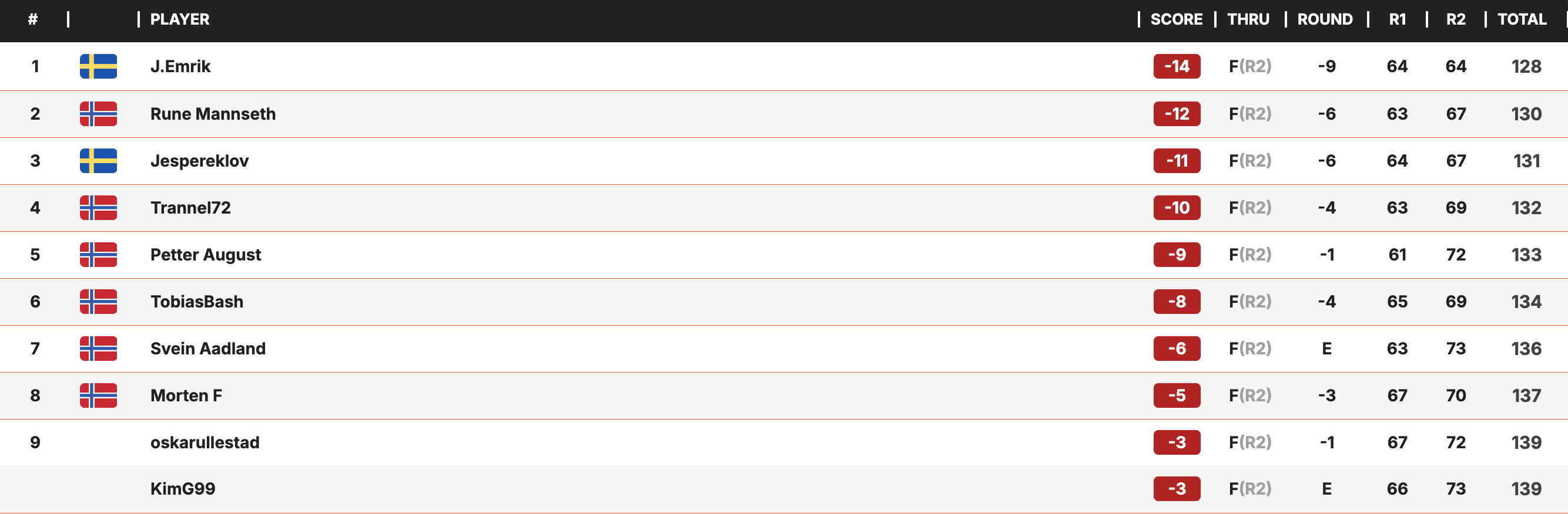 Vi takker alle for god gjennomføring og gratulerer til vinnerne. Turneringen for november måned starter ila denne uken og info kommer her på siden.