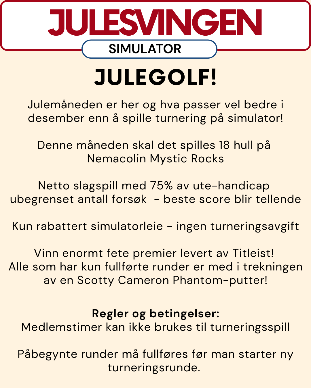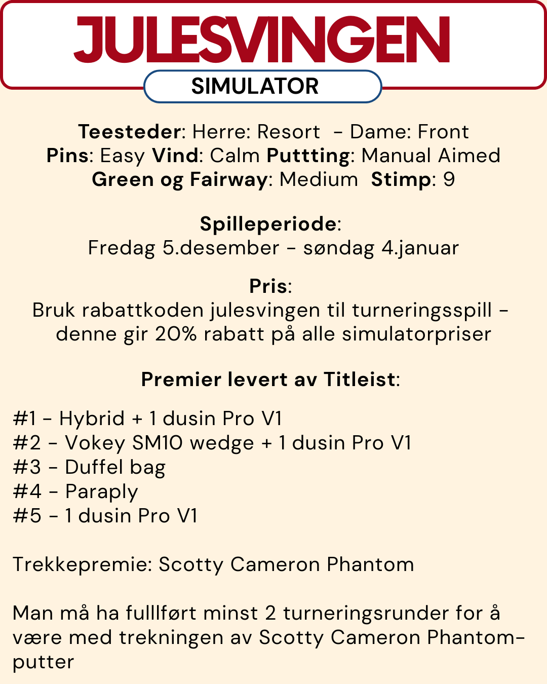 Bruker man rabattkoden “julesvingen” får man 20% rabatt på ordinære simulatorpriser.