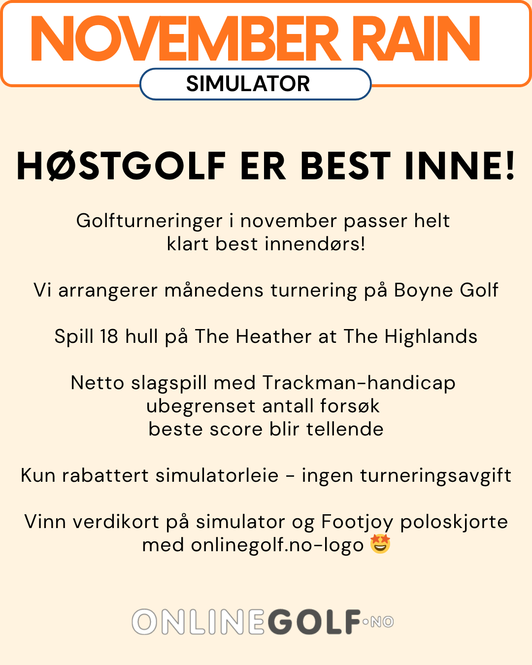 Fredag 5.desember starter Julesvingen som kan spilles frem til søndag 4. januar. Denne turneringen spilles på Nemacolin Mystic Rocks med 75% av utehandicap og spilleform er netto slagspill.